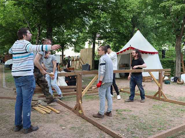 Notre but ? Représenter avec le plus de fidélité possible des tranches de XVème siècle ! Pour ça, deux démarches fortes : vie militaire d’une troupe de l’armée d’Ordonnance en campagne et vie civile, où artisans et artistes font vivre la culture médiévale et plusieurs savoir-faire ancestraux. Pas besoin d’être un expert ! La curiosité, l’envie d’apprendre et de partager suffisent pour apporter votre pierre à l’une et/ou l’autre de nos démarches collectives !